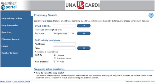 We have partnered with UNA to provide you with a Pharmacy Locator tool to help find the nearest pharmacy that participates in the prescription discount card program. Follow this link to find your most convenient pharmacy location: Pharmacy Lookup Tool